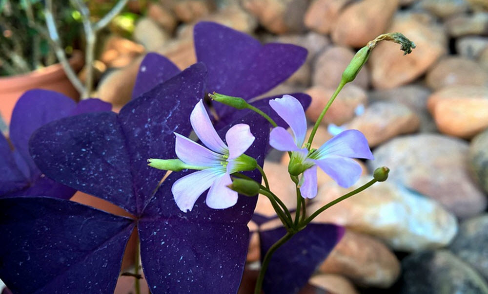 Blomning: Blommar från vår till höst och har vita eller rosa trattformade blommor. Att de har rosa blommor är dock vanligast. Bladen är gröna och tredelade som klöver.